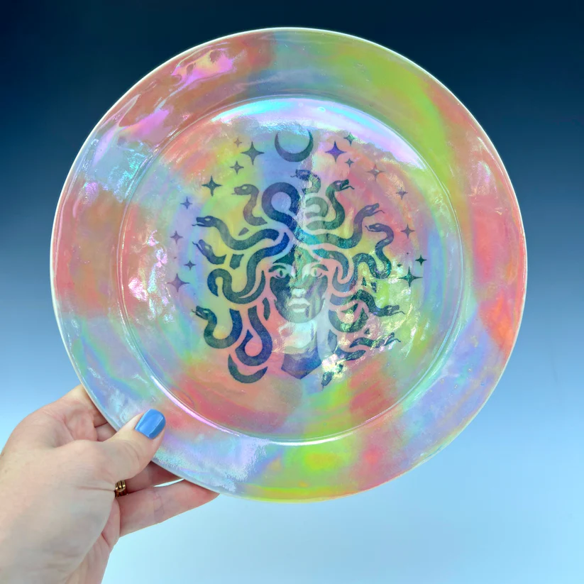 Powered by Smartsupp Rainbow Medusa Dish Round Iridescent Altar Jewelry Tray | David Pottery